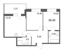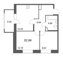 все доступные планировки 3-комнатных квартир евро общей площадью от 52.99 м2 до 66.01 м2 с фотографиями, характеристиками и ценами от застройщика Аквилон-Инвест.