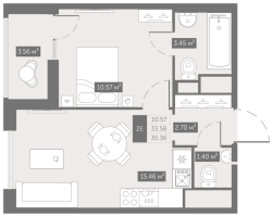 все доступные планировки 2-комнатных квартир общей площадью от 34.62 м2 до 50.27 м2 с фотографиями, характеристиками и ценами от застройщика ФСК Лидер Северо-Запад.